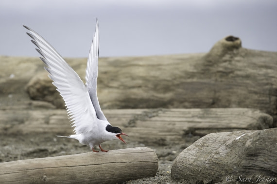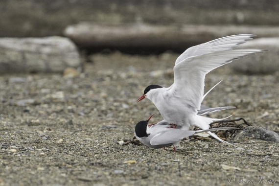 If this goes well, Arctic tern courtship moves to the ground and involves strutting and posturing with their wings held open.