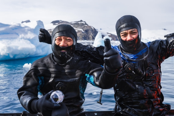 All divers looking for dangerous stunts or deep dives are asked to refrain from this activity. There are no decompression chambers in Antarctica or the Arctic, medical care is almost non-existent, and there is hardly any infrastructure. Although we have a doctor on board the vessel for first-aid assistance, we cannot accept risky ventures from any divers.