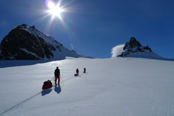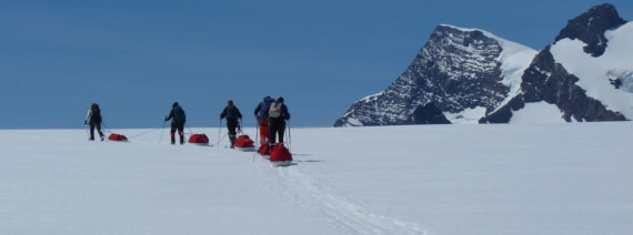 You must be in good physical shape to join this activity. We’ll be on the move for days at a time, pulling supplies behind us. Our path will lead over rough ground, including hills and deep snow but possibly also across crevassed areas and potentially dangerous alpine terrain.